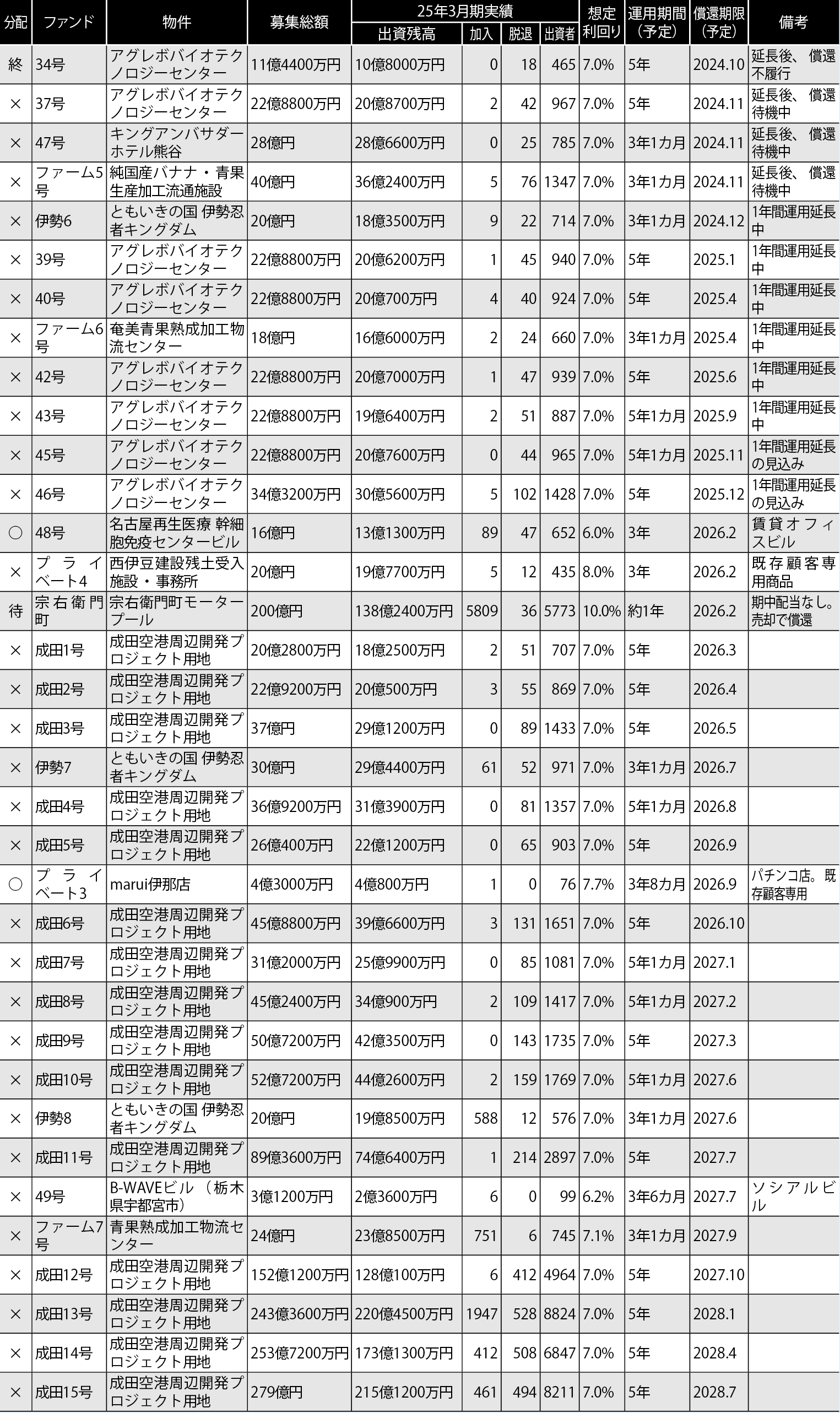 【みんなで大家さん】ファンドごとの状況一覧見やすくて有能すぎる!?宗右衛門町が焦点になりそう?!