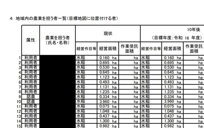 千葉県いすみ市がホームページ(HP)で公開していた農地の「地域計画」資料で、黒く塗りつぶしたはずの個人名や法人名計51…