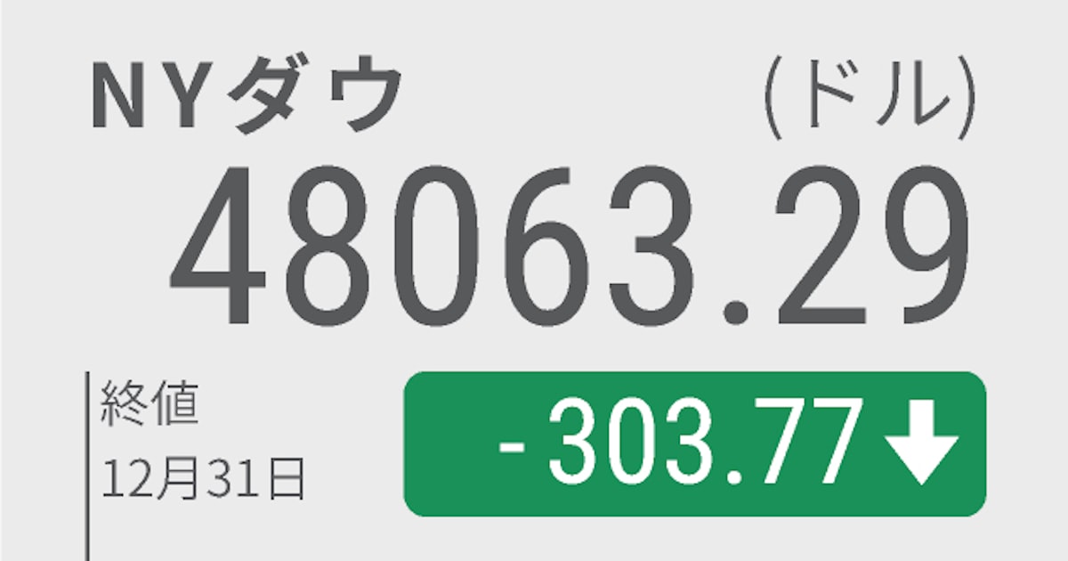 【NQNニューヨーク=横内理恵】31日の米株式市場でダウ工業株30種平均は4日続落し、終値は前日比303ドル77セント(…
